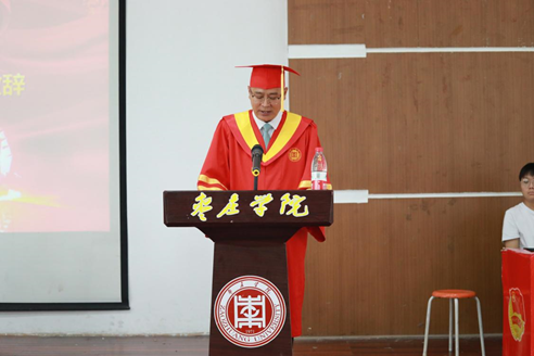 毕业生代表谭棋源同学在发言中表达了对母校的感激与不舍,深情回顾了四年来的点点滴滴,并表示将带着“兼爱、尚贤、博物、戴行”的品质,奉献社会奉献祖国。