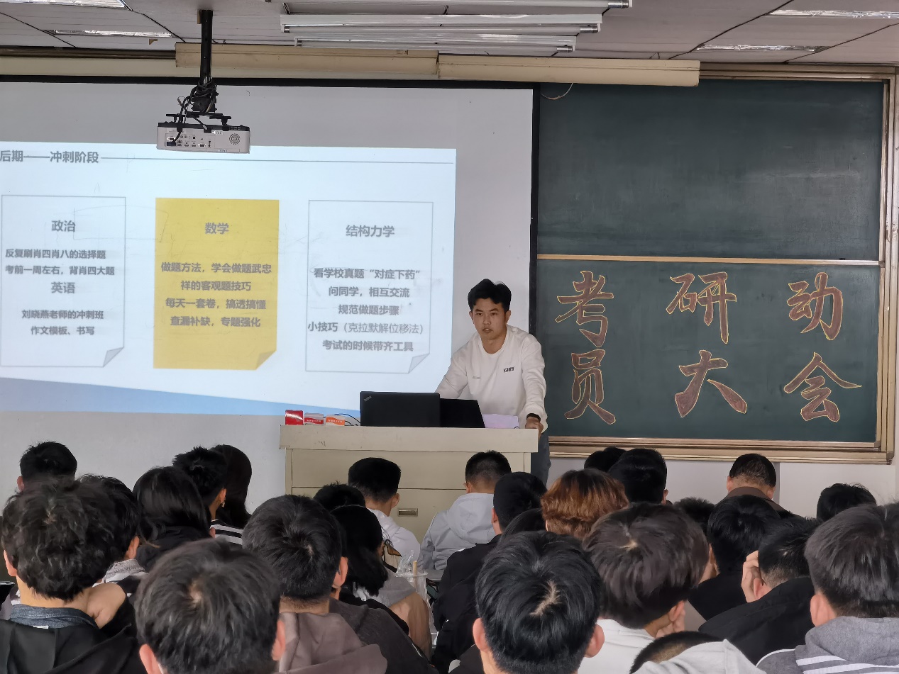 为进一步调动城建学子考研积极性,营造浓郁的考研氛围,解决考研准备阶段的迷茫和困惑,4月14日,伟德国际victor·1946源自2022年考研动员大会在理工楼2505教室举行。伟德国际victor·1946源自副院长裘娜、考研指导教师代表、2021届优秀学生代表以及2022届学生参加了大会。