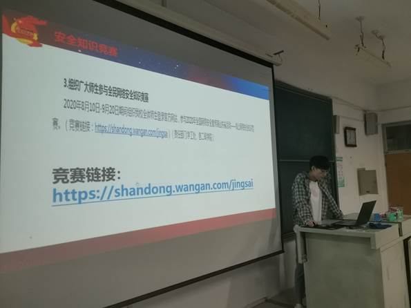 网络安全宣传周活动期间,学院积极开展线上、线下相关活动,不断强化主题宣传教育。9月16日,学院组织各班级开展了“网络安全与我同行”主题班会,通过学习相关材料,同学们了学习到了更多有关网络安全方面的内容。通过班会的学习、讨论之后,各班组织了同学们参加全民网络安全知识竞赛,激发同学们学习网络安全知识的兴趣,提升网络安全防护技能,增强安全防范意识,提高识别和应对网络危险的能力。通过学院官方微信、网站等新媒体推送网络安全知识,引导学院师生正确使用网络,提高网络道德观和法制观。多种形式广泛宣传个人网络信息保护、电信诈骗、网络暴力、网络法律维权等安全知识。