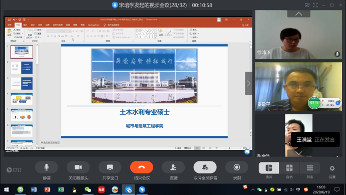 为进一步推进城建学院学科建设及土木水利硕士点建设工作,6月19日下午,我院通过钉钉召开学科建设工作推进线上视频会议。全院专任教师出席会议,会议由院长王满堂主持。