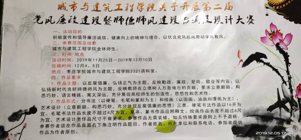 此次党风廉政建设暨师德师风建设书画设计大赛,是践行学校党委提出“777”教书育人模式“立德树人”的积极实践,是锤炼教师“为党育人 为国育才”的责任担当,并将进一步把“不忘初心、牢记使命”主题教育引向深入。