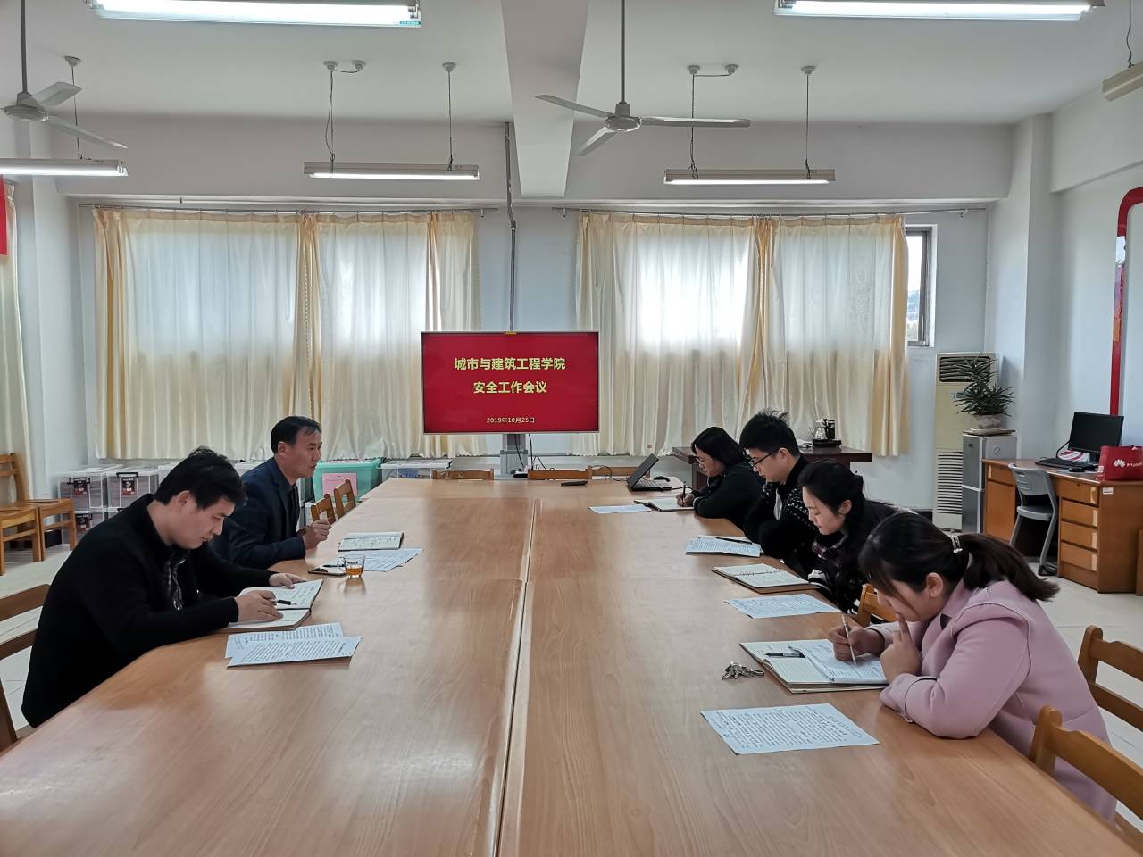 李书记对学院学生安全工作提出了要求:全体辅导员、班主任要明确职责,坚守岗位,将学生安全工作放在第一位,重视学生安全,立即行动起来,查问题,堵漏洞,除隐患;日常生活中要关心学生,严查宿舍安全隐患,强化学生安全意识,提高防范能力;结合主题班会开展形式多样的安全教育活动,做好应急预案,防患于未然。