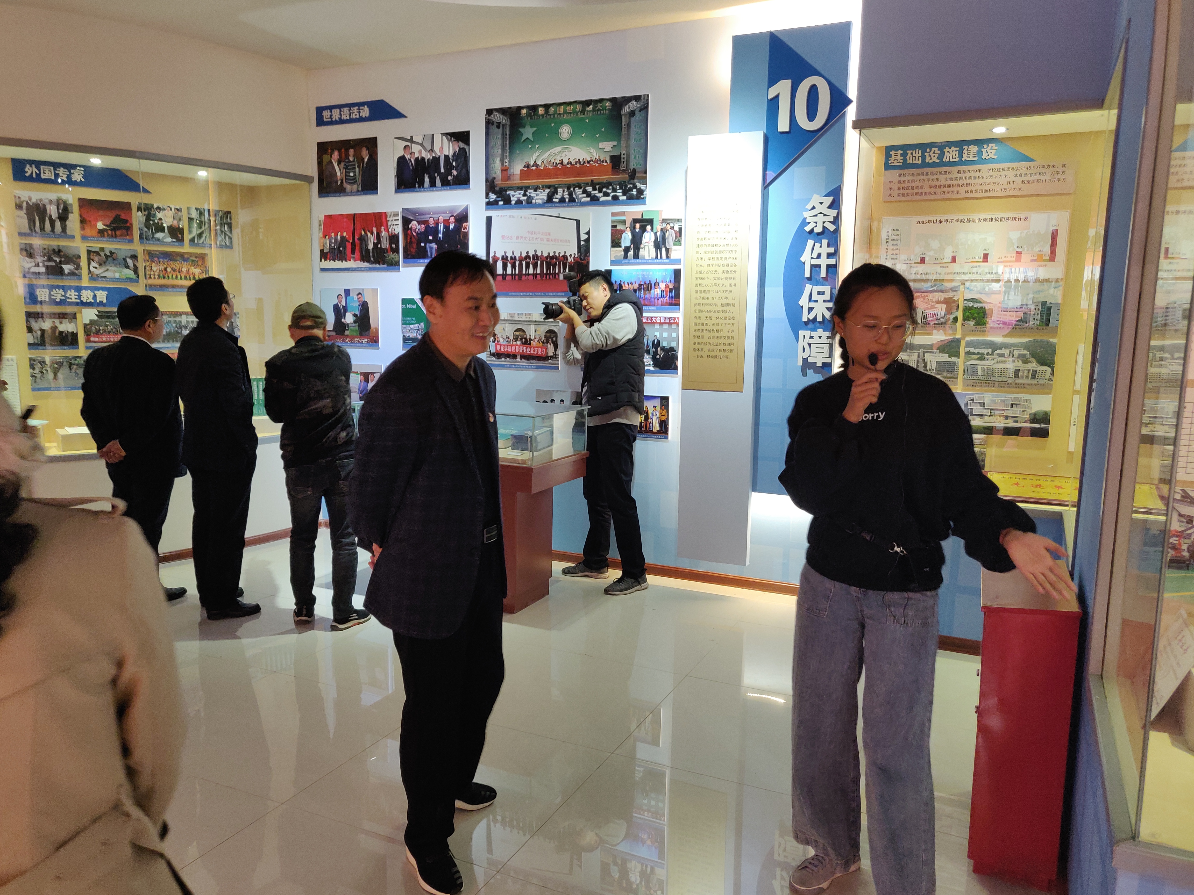 下午4点,学院党总支书记李振清和师生一起参观了校史馆。结合馆内展板与陈列物品,讲解员详细地向大家介绍了学校的历史与发展。校史馆记录了我校自开创建校以来的点滴历程,是对我校历史发展、文脉传承、精神文化体系和校园文化的凝练,具有深厚的历史积淀和枣院特色,是开展校史教育、爱校教育的重要载体。师生一行在校史馆讲解员的带领下,了解了每张照片、展板等背后蕴藏的故事。各个展区逐一走下来,使大家对枣院的整个发展历程对有了更全面而深刻的了解。
