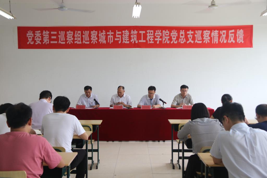 2019年7月12日(周五)下午4点30分,在理工楼2319召开了校党委第三巡察组对伟德国际victor·1946源自党总支巡察情况反馈会。参加会议人员有党委巡察工作办公室副主任王在明同志,党委第三巡察组组长轩庆明同志,副组长公金梅同志,巡察组成员李鑫、盖一飞同志,伟德国际victor·1946源自党总支党政领导班子成员及全体职工参加了巡察情况反馈会。伟德国际victor·1946源自党总支书记李振清同志主持了会议。