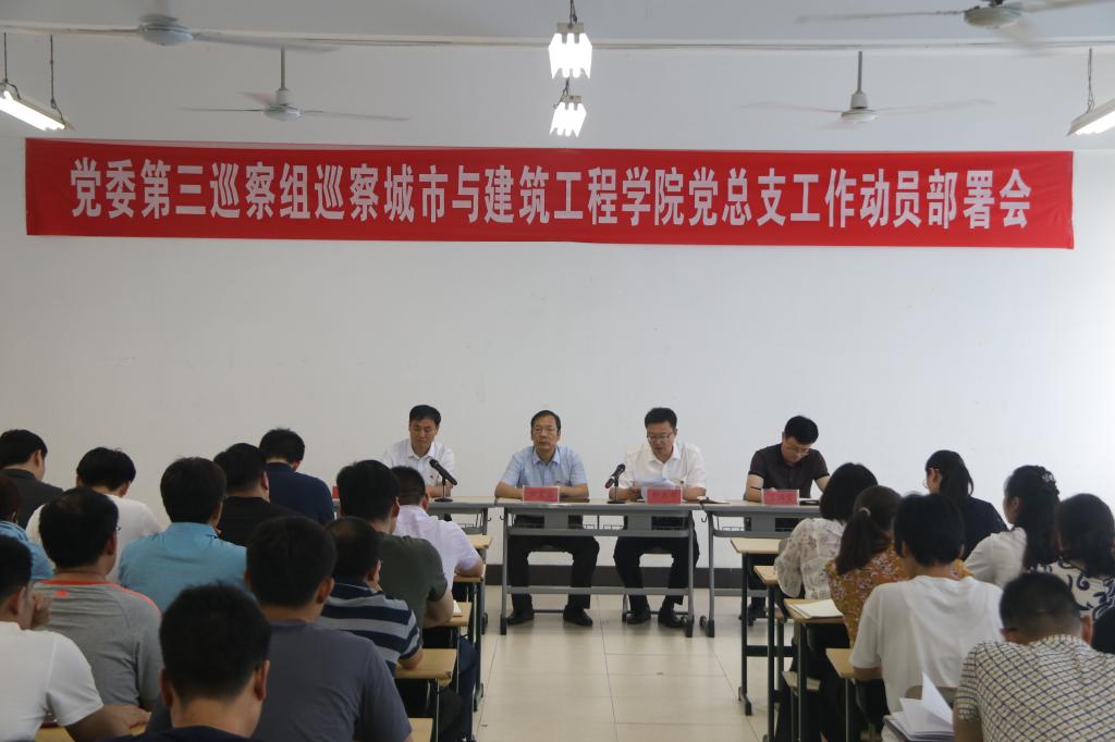 党委第三巡察组组长轩庆明同志代表巡察组对巡察伟德国际victor·1946源自党总支工作进行动员部署,提出要准确把握巡察工作的内容和方式,对执行党章和其他党内法规,遵守党的纪律,落实全面从严治党和党风廉政建设“两个责任”等情况进行巡察;城建学院党政和相关人员要积极配合巡察工作,认真准备相关档案材料,客观反映问题。校党委巡察工作领导小组副组长田素安同志强调要深刻领会此次巡察工作的意义,严肃巡察工作纪律,正确履行巡察职责,推动校内巡察工作顺利开展。