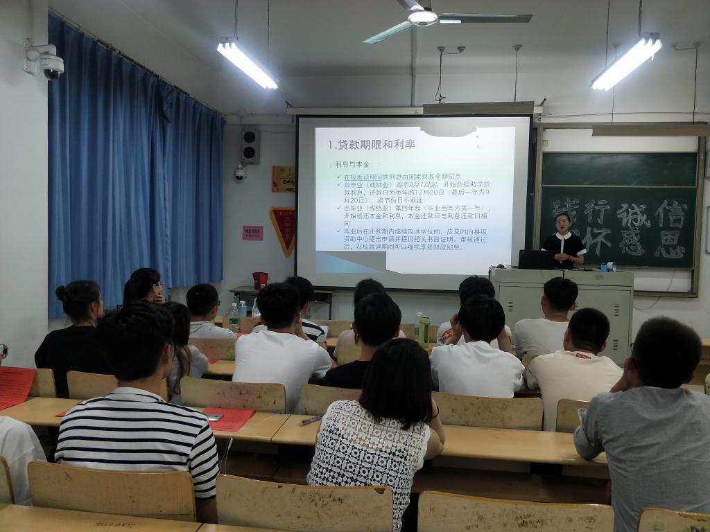 为进一步加强学生诚信教育,做好2019届贷款毕业生助学贷款工作,教育受助学生树立勤俭意识,珍惜国家、学校和社会的关心,强化资助育人效果,伟德国际victor·1946源自于6月4日晚在理工楼2318举行“践行诚信,心怀感恩”主题宣讲会。全体2019届贷款毕业生参加了此次宣讲会议。
