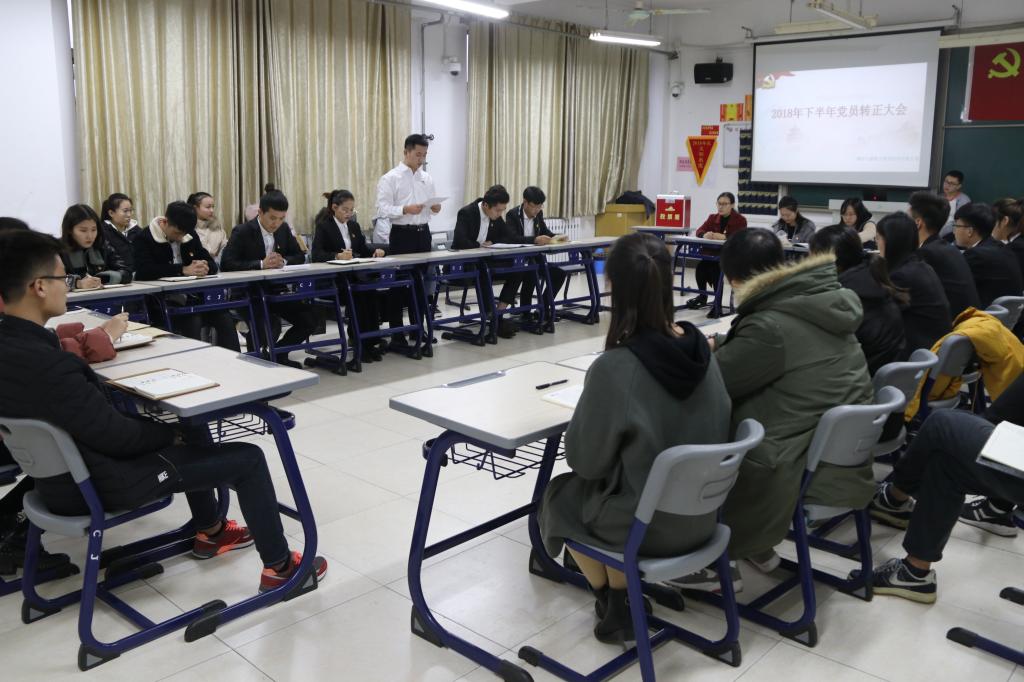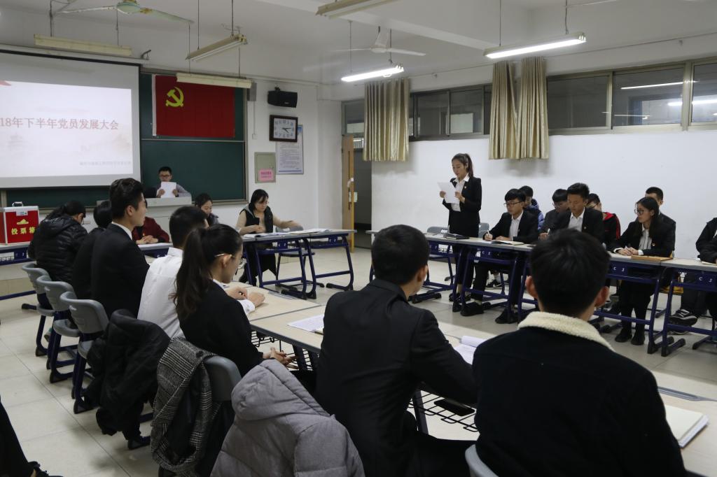 本次会议内容分两项:党员纳新及预备党员转正。大会开始,由四位预备党员依次表明入党动机和他们要加入中国共产党的强烈愿望。接着,五位申请入党人逐一进行入党志愿书的宣读以及自己的入党动机。申请入党的同学都真情的表达了对党的向往,对党的忠诚,表示坚定不移跟党走,为党的工作付出自己的力量,为共产主义奋斗终生。老师们对发展预备党员寄予希望,鼓励他们随时与党中央保持一致,为同学服务,做学生表率,加强自我要求。各入党介绍人对申请入党人的学习、工作、实践活动等方面进行了全面的评价,对其政审情况提出意见。所有党员进行讨论并充分发表各自意见,申请人再次表明态度后,拥有表决权的党员对接收党员与预备党员进行了投票表决,最终通过了转正党员转为正式党员,发展对象正式成为预备党员。