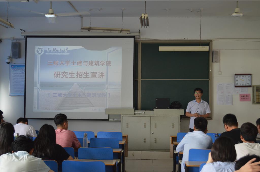 会上,张鹏博士从三峡大学情况、土木与建筑学院情况、招生专业、研究生奖助体系及就业、研究生生活等方面展开介绍,详细地讲述了学校、学院各方面的情况,全面细致地介绍了学院的学科建设情况和招生情况,讲解了三峡大学的研究生奖励体系和生活实验环境。张鹏博士表示:欢迎同学们报考三峡大学土木与建筑学院或者向我咨询相关考研情况。最后,他热情与学生互动,耐心为学生解疑答惑。