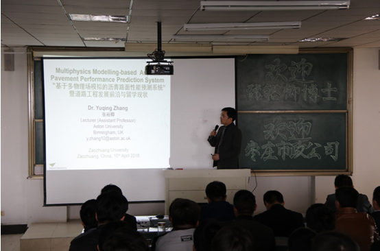 在理工楼2505房间,张裕卿博士做了题为“基于多物理场模拟的沥青路面性能预测系统”的学术报告。枣庄市政集团技术人员、部分教师及2015-2016级土木工程专业学生听取了本次学术报告,报告会由院长王满堂主持。针对目前经验模型对沥青路面性能预测存在较大误差的问题,张裕卿博士根据自己多年来的科研工作,开发了基于力学理论模型和多物理场耦合模拟的沥青路面使用性能预测系统。通过建立沥青混凝土材料的粘弹塑性本构模型,提出相应的材料参数校准方法,并模拟路面结构的温度与氧化的多物理场耦合作用,分析了沥青材料在不同形式荷载作用下的性能演化,从而建立了高等级公路沥青路面的性能预测模型与有限元模拟系统。为不同沥青材料优选、沥青混合料设计、复杂自然环境下路面结构设计与养护管理提供了一个准确可靠的理论支持和实现方法。