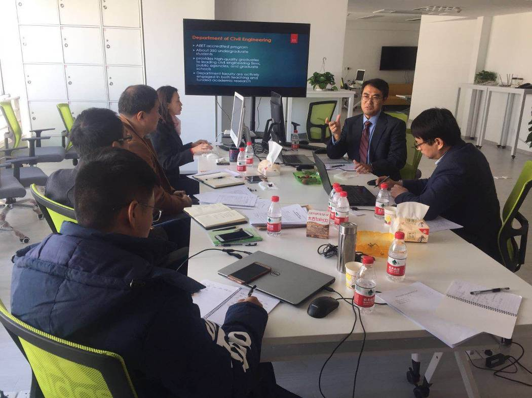 中美专家和土木教研室4位教师就土木工程专业认证、人才培养方案、专业课程引进及实验室建设进行了深度讨论,双方对“中美双百计划”项目的推进和专业建设有了更清晰的理解。首先,吴晓老师介绍了OBE成果导向教育理念与传统教育的区别,以及基于OBE理念的培养方案修订思路。其次,成鼎新教授和张举兵副教授分别讲解了ABET专业认证和土木工程CEEAA认证的标准和具体要求。两位专家结合土木工程专业认证标准和我校应用型大学建设的实际情况,与我校教师就人才培养方案进行了深入的研讨和修改,双方最终确定我校土木工程专业引进的10门专业课程。最后,两位专家对我校土木工程实验室及新校区实验室的建设给出了宝贵的建议。