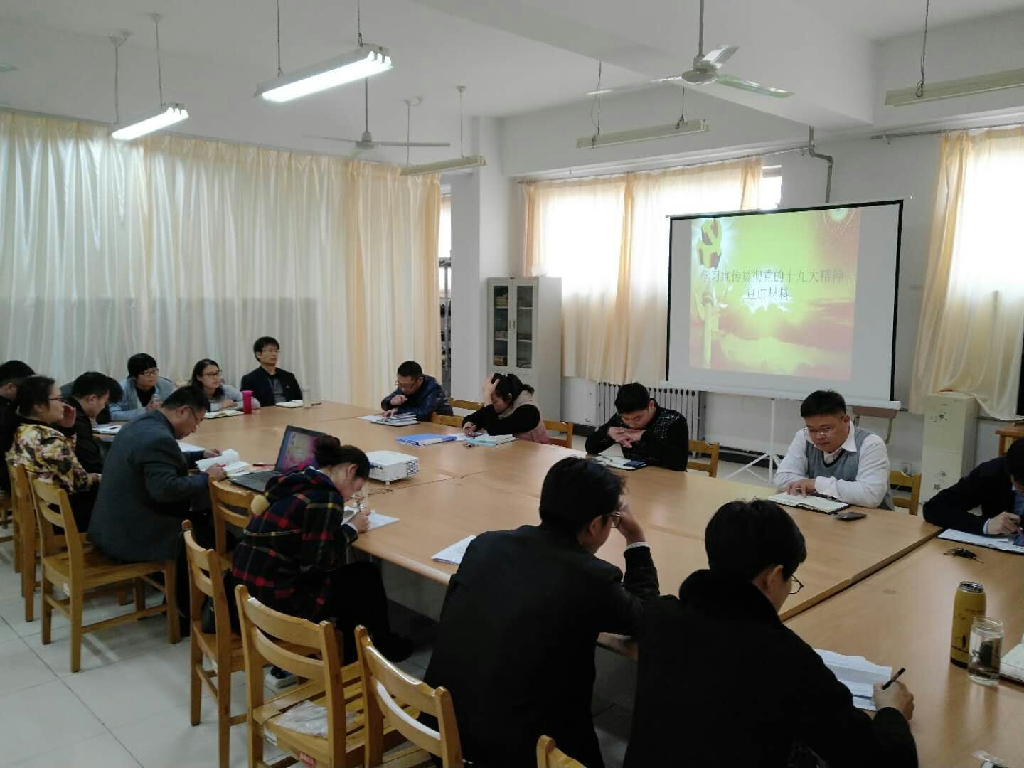 11月8日,城建学院召开主题党日活动,张翠梅同志主持学习了十九大讲话精神,具体学习了习近平代表第十八届中央委员会向党的十九大所作的报告、党的十九大通过的《中国共产党章程(修正案)》以及学习宣传贯彻党的十九大精神宣讲材料。党员教师李天鹏、李晓明、卢明师等同志相继讨论发言,李天鹏同志说到:通过对《中国共产党章程(修正案)》和学习宣传贯彻党的十九大精神宣讲材料的学习,对本人的启发很大,对本人今后的工作、学习及生活等各个方面都将产生深远影响。主要体现在以下几个方面:1. 信仰,党的十九大明确指出:中国共产党人的初心和使命是为中国人民谋幸福,为中华民族谋复兴。这既是我们的初心和使命,更是我们的坚不可摧的信仰。2. 责任,全面学习及深入领会习近平新时代中国特色社会主义思想,是我们作为一线教育工作者不可推卸的责任,所以我们有义务让十九大精神进教材、进课堂、进头脑。3. 创新