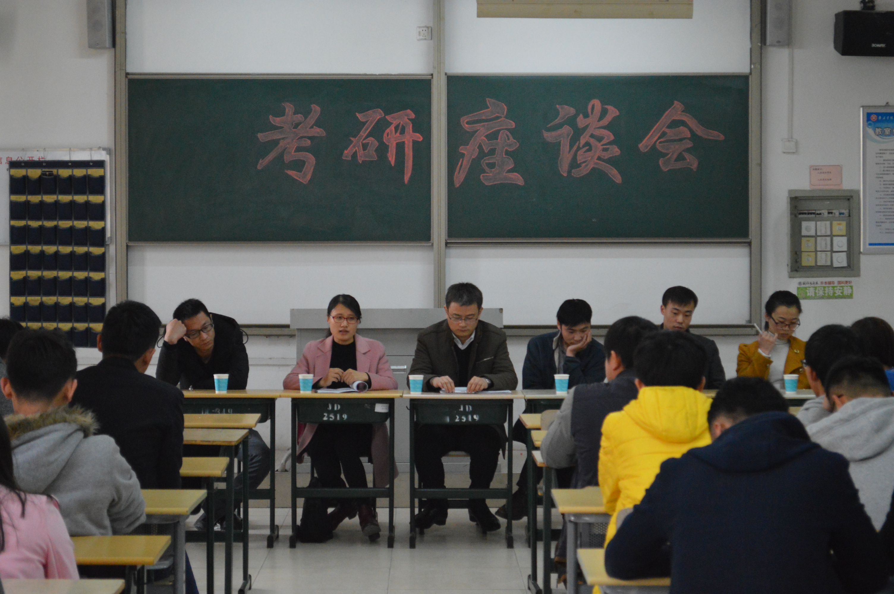 座谈会上,各专业老师依次分享、交流考研经验,结合自己的亲身经历,向同学们传授考试技巧和方法。通过多年累积的经验,告诉同学们要注重提高自身心理素质、在学习过程中要注重学习效率的提高、要懂的勤能补拙对考研成功的重要性。老师们针对学生在面对考研过程中产生的疑惑进行一一解答:包括辅导班的选择、各专业就业方向、近年来考研率等一系列问题。最后,王满堂老师鼓励学生要保持吃苦精神,卧薪尝胆迎战考研。座谈会在轻松讨论的氛围中进入了尾声。