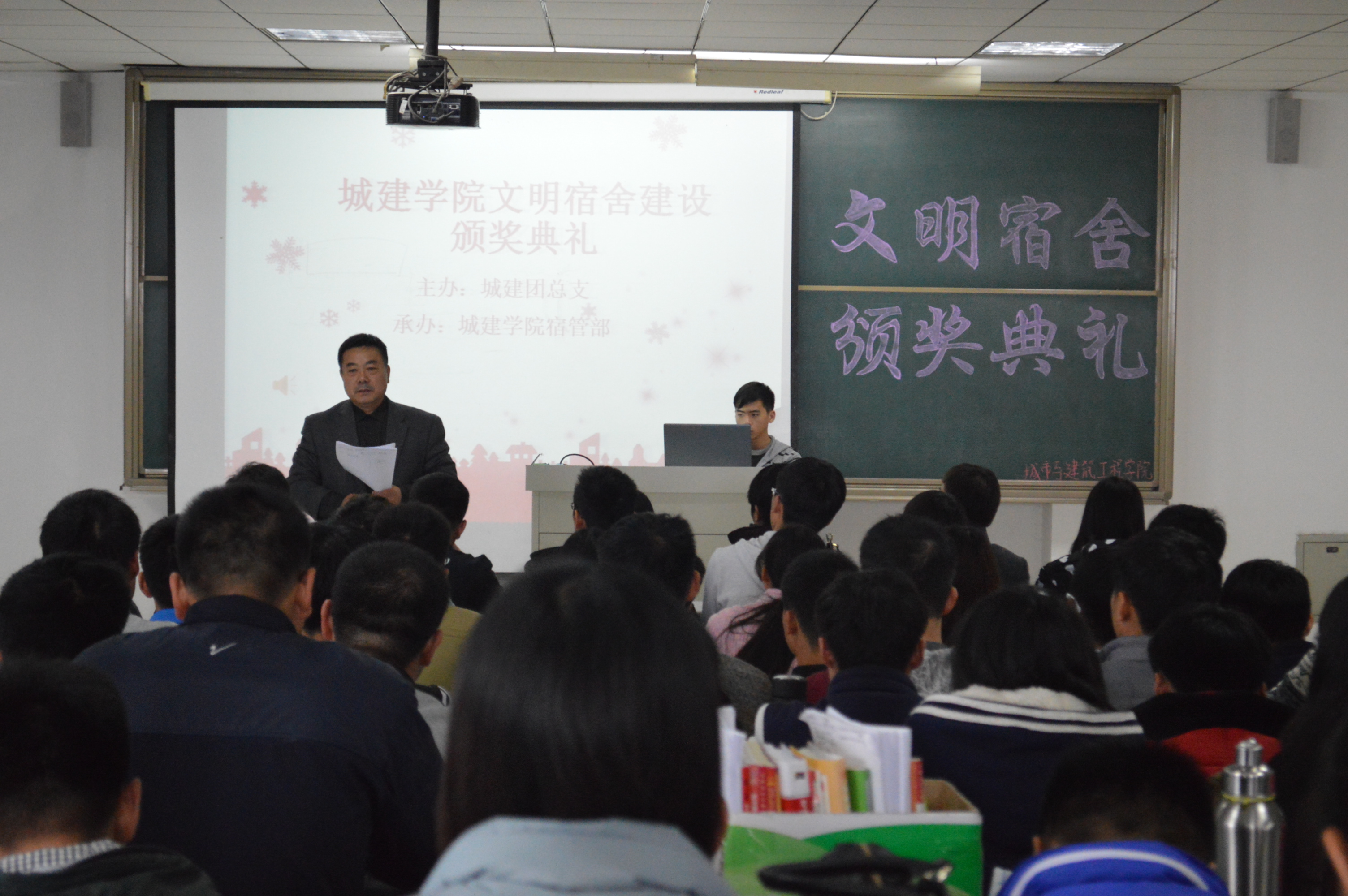 11月18日下午,城建学院在理工楼2505举办了文明宿舍颁奖典礼。党总支书记宋博,全体辅导员,学生会干部以及150余名学生参加了典礼。