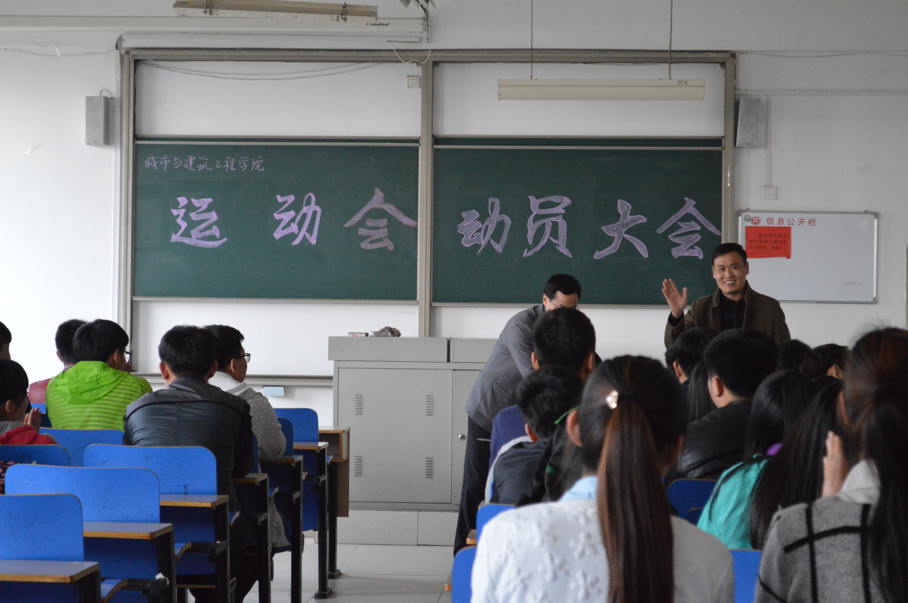,城建学院运动会动员大会在理工楼2518教室举行,辅导员、全体运动员及学生会成员参加,院长李振清出席本次会议。