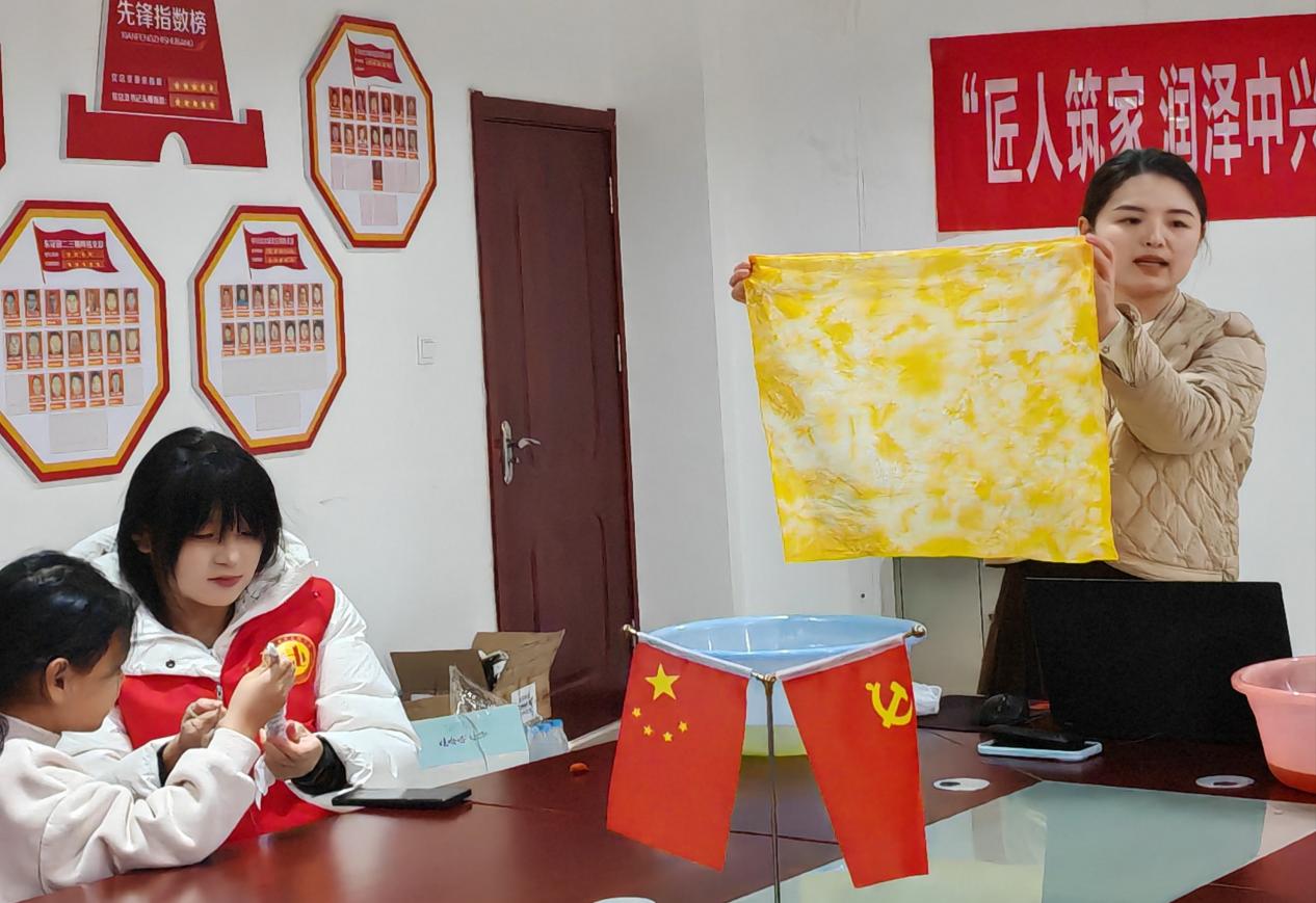 活动现场,师生党员带领社区居民开展了非遗草木染扎染和创意水粉涂鸦活动,通过亲子活动,向社区居民和青少年传播非遗文化和环保知识,提升他们的动手能力和创造力,促进亲子关系。