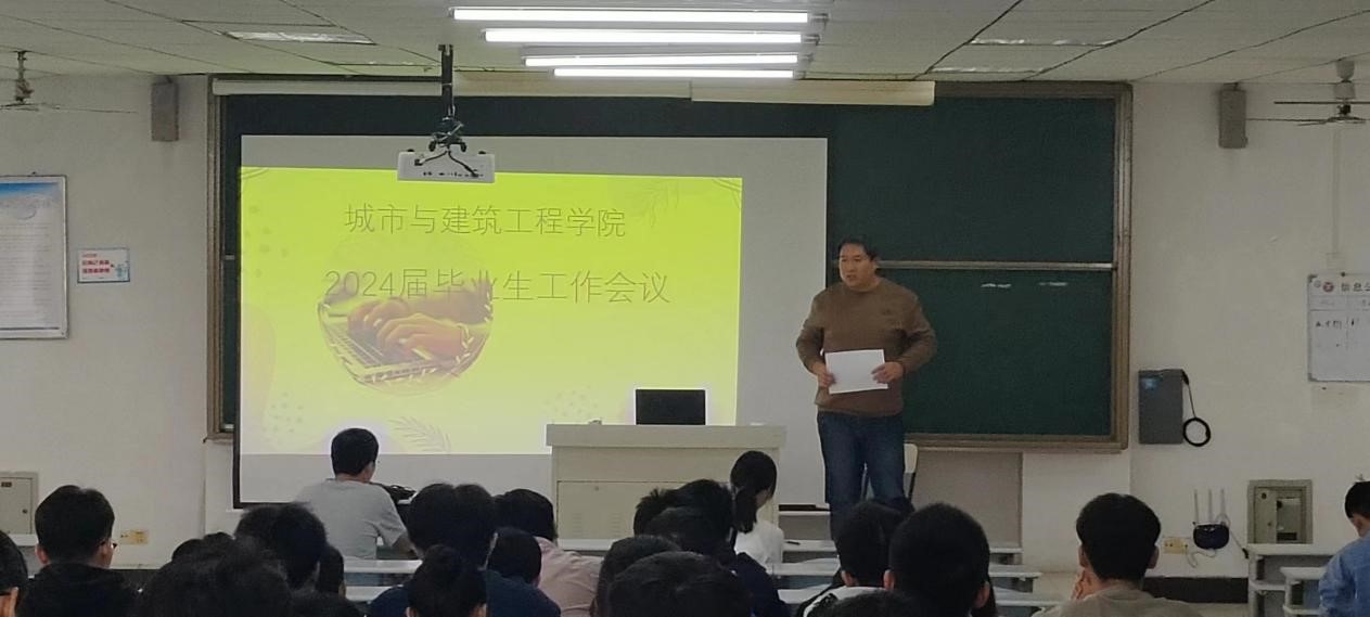 为全力做好2024届毕业生工作,贯彻落实学校毕业生毕业及就业工作会议精神,9月26日下午,我院在理工楼2505教室召开2024届毕业生工作会议,参与此次会议的有院长助理孙启林博士、城市与地下空间工程专业负责人张淑坤教授、各教研室主任、毕业班辅导员班主任及2024届全体毕业生。会议由院长助理孙启林老师主持。