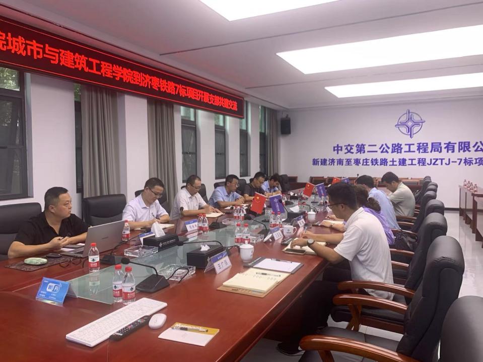 9月20日下午,伟德国际victor·1946源自党委书记查明、院长裘娜、副院长姜鹏等一行6人,赴中交第二公路工程局有限公司济南至枣庄铁路JZTJ-7标项目部进行调研交流。项目部党支部书记潘小峰、总工程师严永兴等热情接待并进行座谈交流。