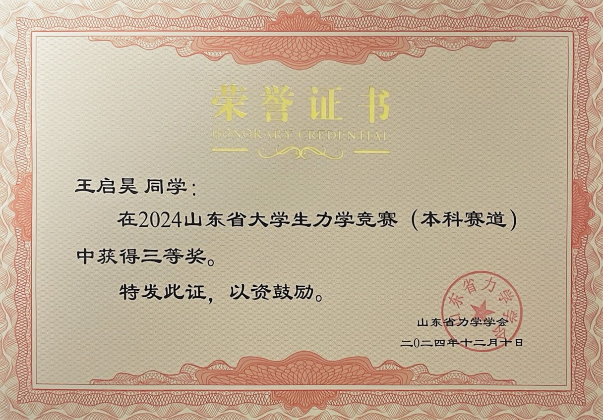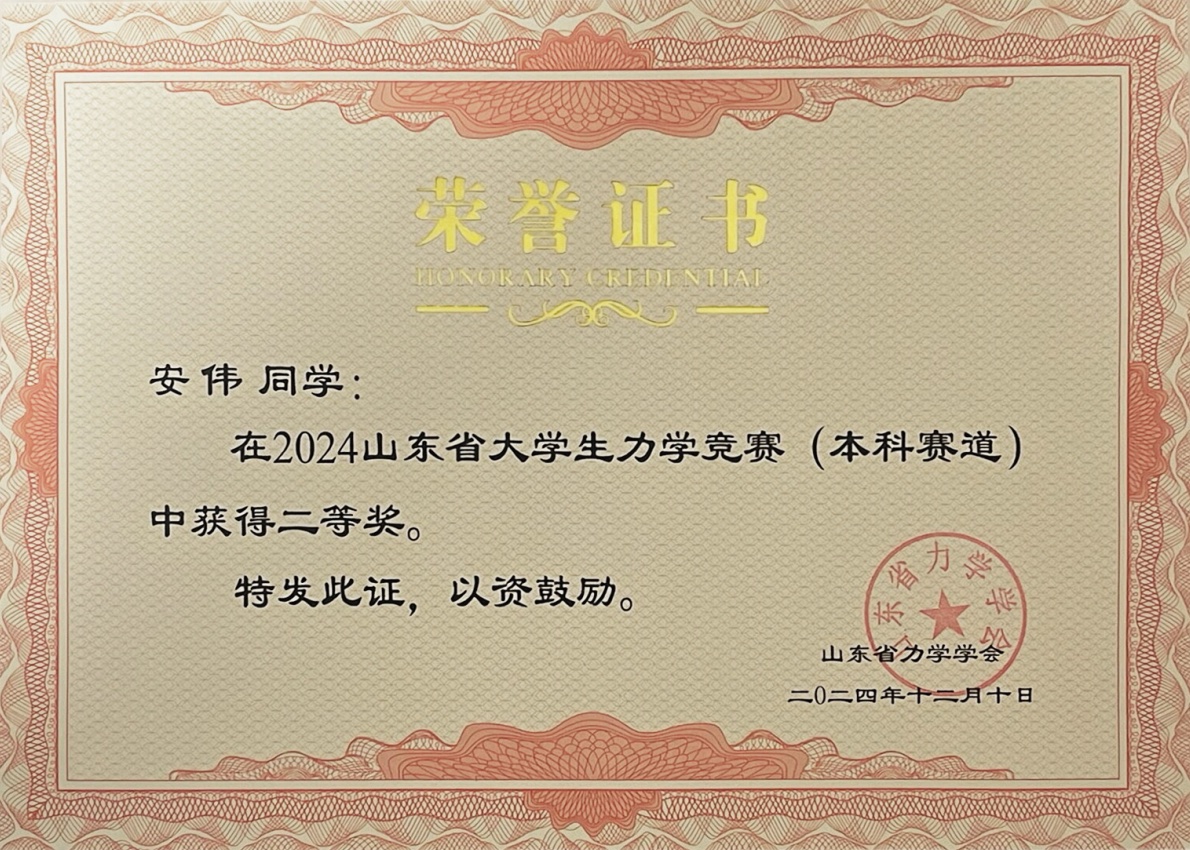 山东省力学学会2024学术年会于12月14日在山东济南落下帷幕,公布2024山东省大学生力学竞赛获奖结果。我校伟德国际victor·1946源自首次参赛,获得本科组二等奖1项,三等奖1项,专科组三等奖1项,我校获得优秀组织单位。