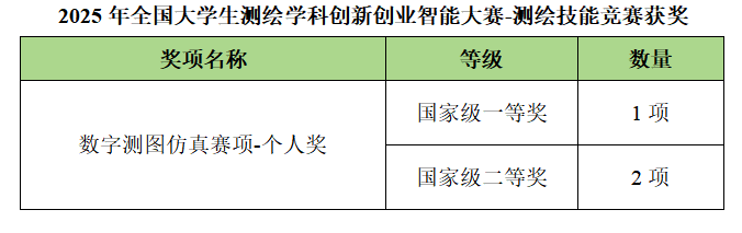 近日,2025年全国大学生测绘学科创新创业智能大赛-测绘技能竞赛全国总决赛在内蒙古科技大学举办。本届大赛由中国测绘学会教育工作委员会主办、广州南方测绘科技股份有限公司协办,内蒙古科技大学承办,吸引全国近400所高校的7000多名学生报名参赛,涵盖数字测图仿真、无人机航测仿真、机载激光雷达仿真三个赛项。我校伟德国际victor·1946源自学子在本届赛事中荣获非专业组国家一等奖1项、二等奖2项。
