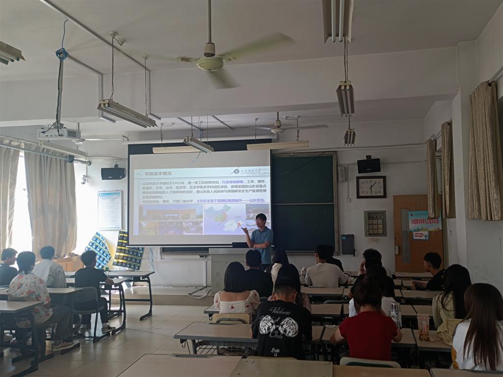 第二场由山东科技大学能源与矿业工程学院宣讲,王教授两人从院系的历史传承到学科优势,从师资力量到科研成果,向同学们一一介绍,让同学们对能源与矿业工程学院有了深入的了解。
