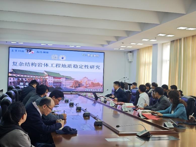 张教授致力于探索复杂结构岩体稳定性分析的新方法新技术,以及变形岩体的形成和演化规律,为该领域的科学研究和工程实践提供了宝贵的见解和方法。会后,张教授参观了城建学院的实验室,给予了充分的肯定和宝贵的意见,并表达了未来能有更多学术交流及科研项目合作的意愿。