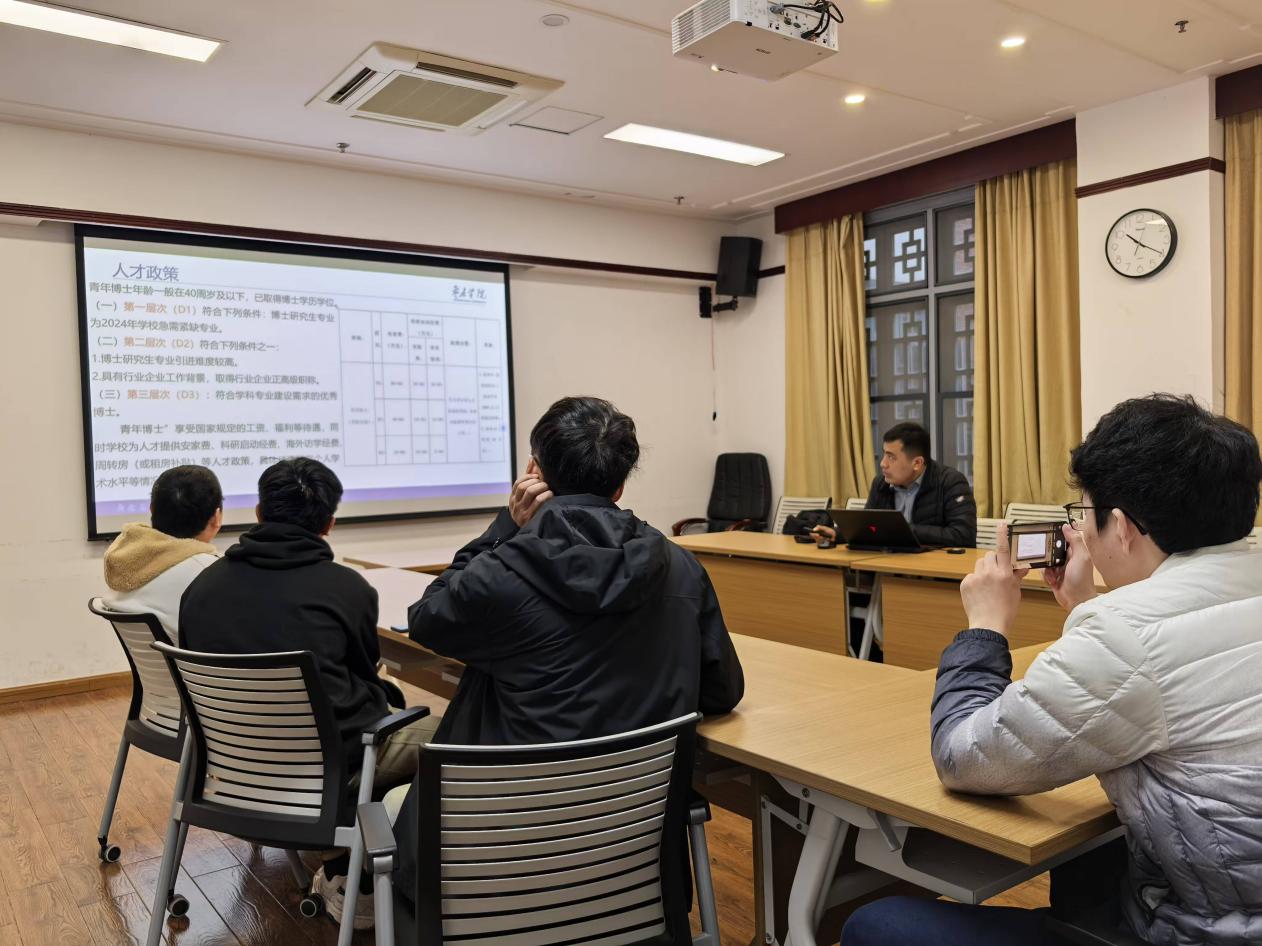 在宣讲会上,姜鹏全面介绍了学院的基本情况、师资队伍、教学设施、科研教学成果以及人才政策,并详细阐述了博士人才在学院的职业发展路径、科研平台建设和团队合作机会。现场气氛热烈,博士生们对bv1946伟德的人才政策表现出浓厚兴趣,并就他们关心的问题与学院代表进行了深入交流。姜鹏对所有问题都给予了详尽的解答,并热情邀请他们到学院进行实地考察。
