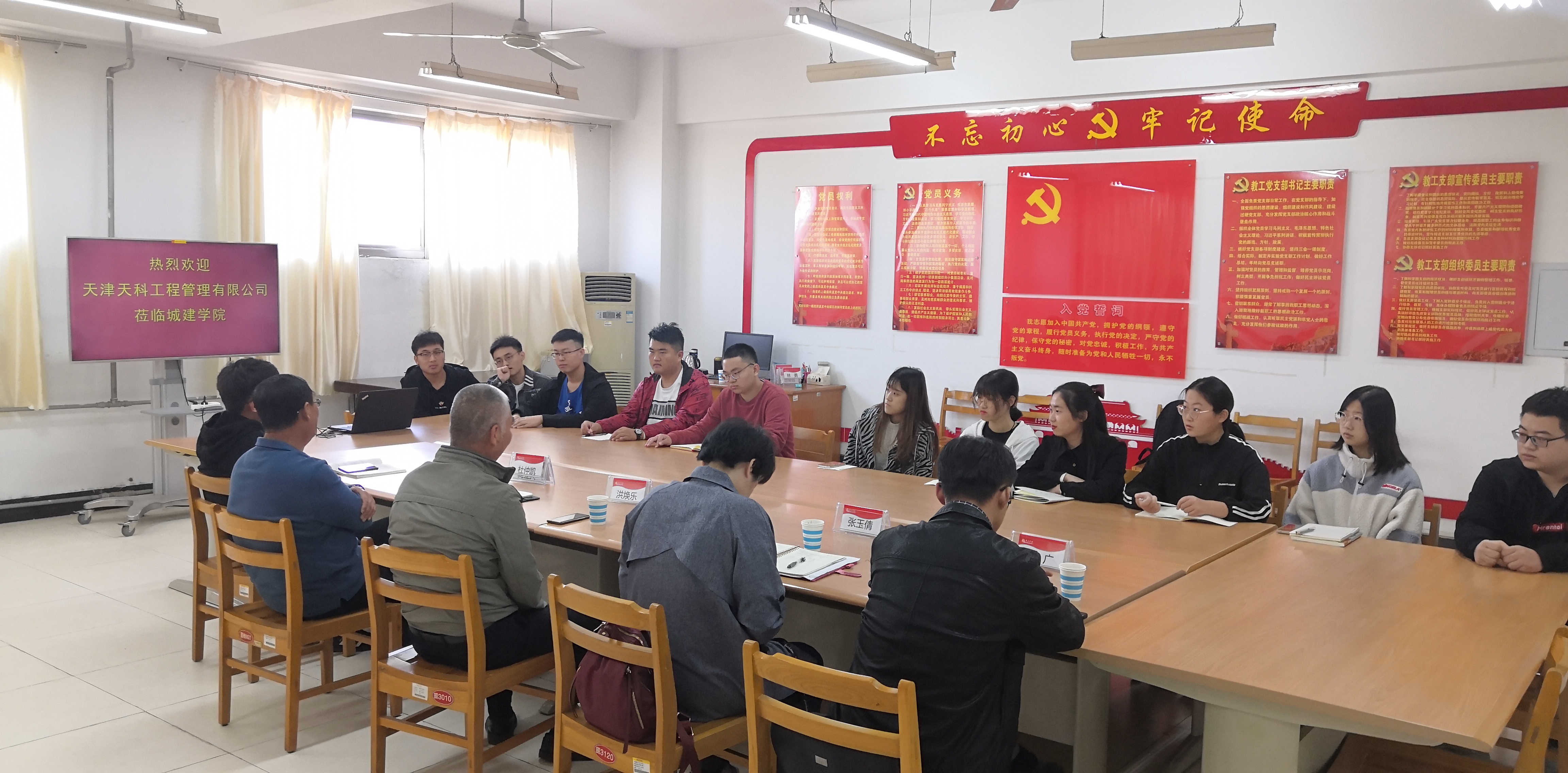2020年10月22日上午,天津天科工程管理有限公司副总经理洪焕乐、杜仲凯一行四人来我院考察交流。伟德国际victor·1946源自党总支书记李振清、党总支副书记徐海波、就业指导教师、土木工程专业负责人及部分学生代表参加座谈会。