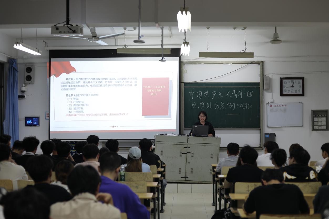 团课伊始,学院团委书记裴娴哲带领全体团员重温了入团誓词,并围绕《中国共产主义青年团纪律处分条例》总则、违纪行为与处分种类、处分程序等章节进行详细解读,强调团的纪律是维护组织先进性和纯洁性的重要保障,要求全体团员以《中国共产主义青年团纪律处分条例》为镜,严守政治纪律、组织纪律、廉洁纪律、群众纪律、工作纪律和生活纪律,做遵规守纪的模范表率。