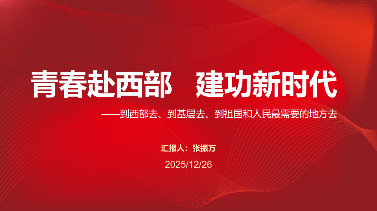 最后,裴娴哲总结强调,基层是锤炼本领的沃土,奉献是青春最亮丽的底色。“西部计划”是国家重要的人才工程和战略布局,为青年学子深入国情、服务社会、锻炼成才提供了宝贵平台。希望同学们要以优秀校友为榜样,坚定理想信念,厚植家国情怀,主动将个人发展融入国家需要,在基层实践中经风雨、见世面、壮筋骨,努力成长为堪当大任的时代新人。