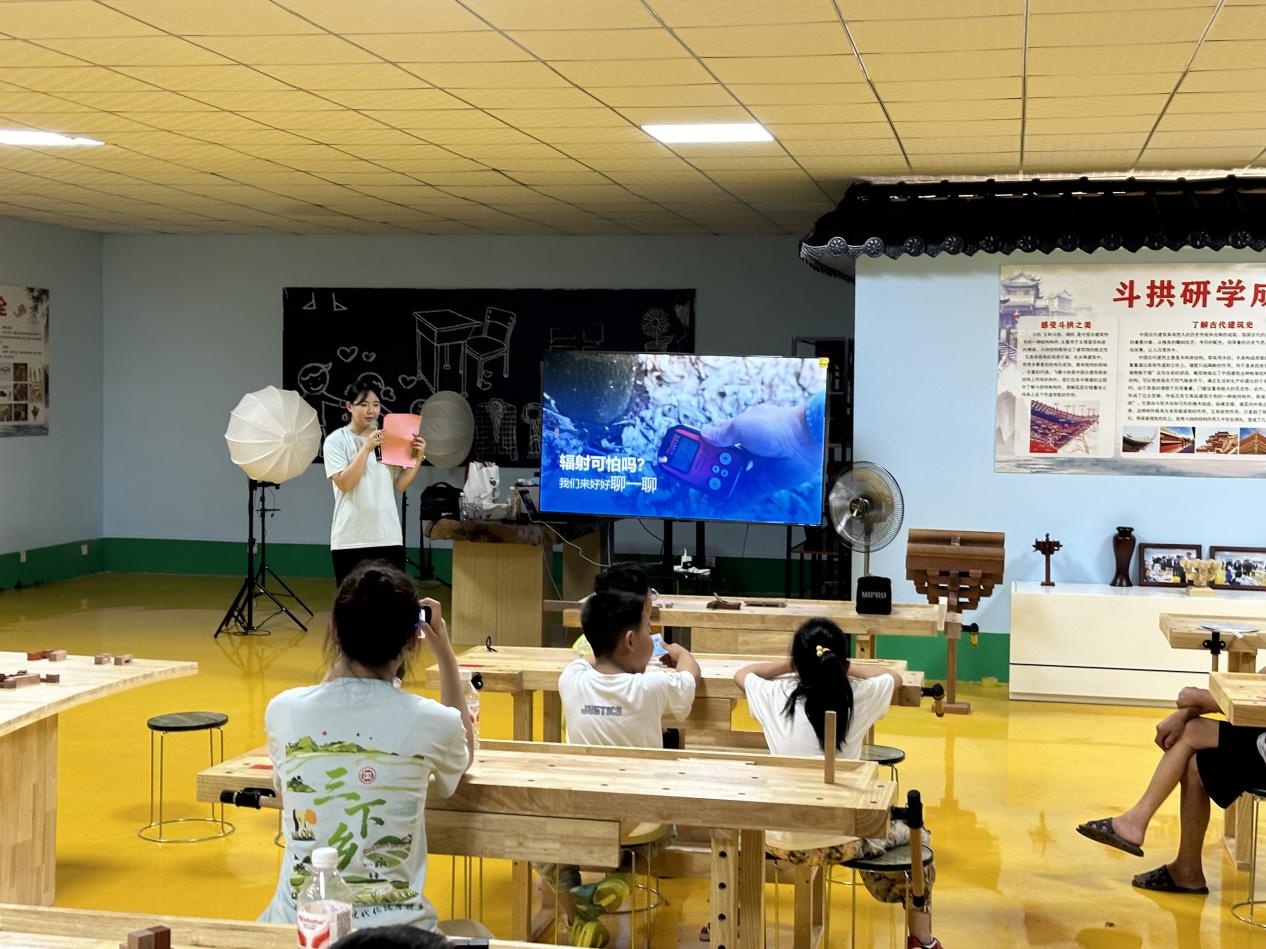 团队思政导师、马克思主义学院王婷婷老师在非遗小院开讲“两弹一星”微党课;“两弹一星”精神宣讲团队成员通过《生活中的核辐射》科普课堂,用科学破除认知迷雾,为村民普及核辐射知识,激发孩子们弘扬“两弹一星”精神的热情;实践团还开展了“班墨匠心,智启未来”主题宣讲,开展“鲁班小工匠”挑战赛、未来工匠畅想墙等活动,小朋友们、村民与青年志愿者共话技艺传承与乡村发展。