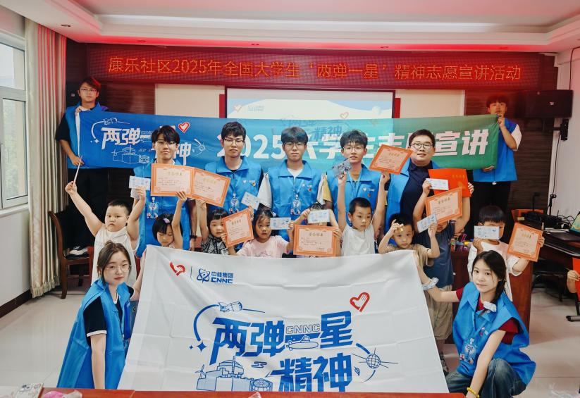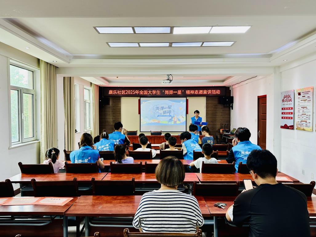 为深入学习贯彻习近平新时代中国特色社会主义思想,引导青年坚定报国信念,弘扬“两弹一星”精神,激发青少年科学理想与爱国情怀。近日,bv1946伟德“星核砼筑·匠韵相传”志愿宣讲团联合德州市新湖街道团工委走进德州市新湖街道康乐社区,开展2025年全国大学生“两弹一星”精神志愿宣讲活动。