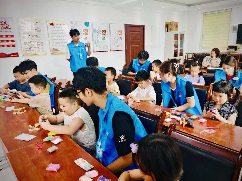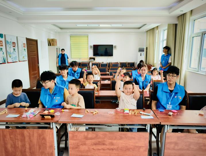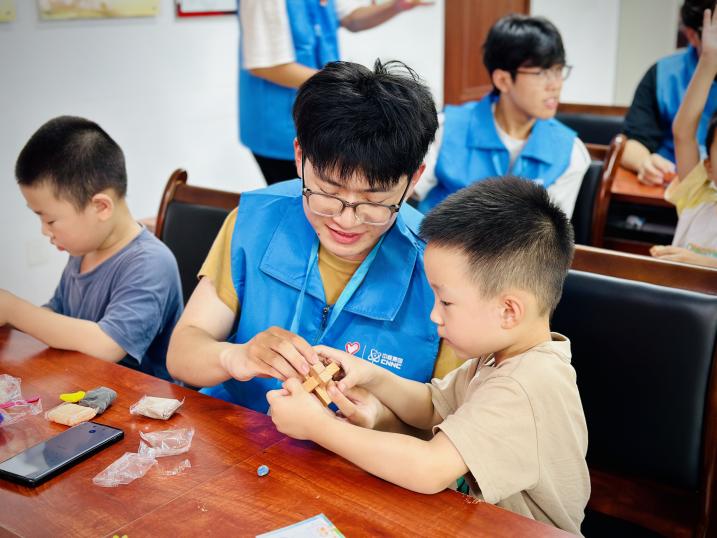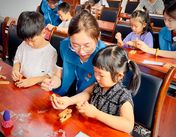 为了让孩子们更直观地感受科学魅力,志愿者精心设计了多项互动环节。青少年们通过太空泥制作火箭、核潜艇等模型,直观了解装备结构,感悟老一辈科学家自力更生的奋斗精神;同时,他们以传统榫卯工艺与现代积木技术相结合的方式,合作搭建“华龙一号”核电站核心模型,在模拟科研攻关的过程中,深刻体会到团队协作的力量和科学家们的智慧。这些活动不仅激发了孩子们的创新思维,更在他们心中播下了爱国与科学的种子。