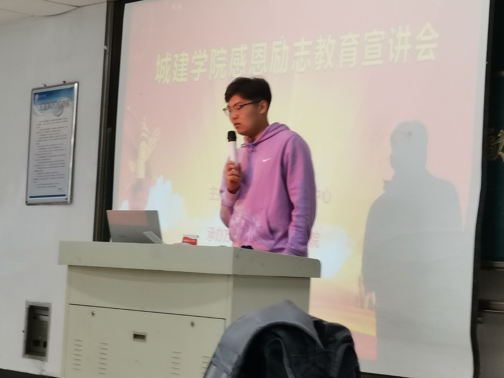 首先,城建学院学生会生活权益部部长马骁对我校学生资助政策进行详细解读,就同学们关心关注的申报流程及注意事项进行详细介绍。重点针对国家奖学金、助学金等具体事项进行说明。