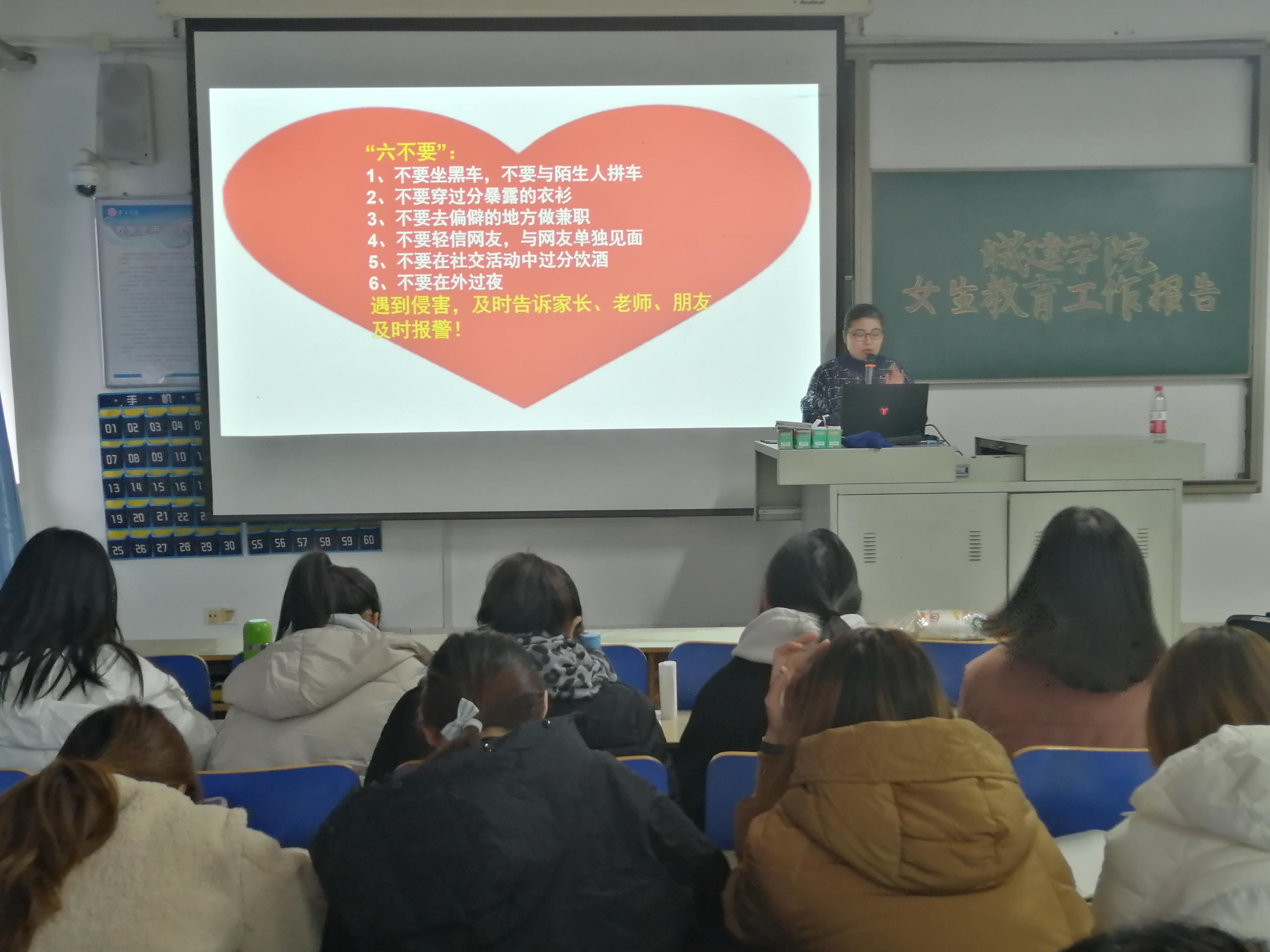 为提高我院女生的安全防范意识,增强女生的自我保护能力,11月27日下午,伟德国际victor·1946源自在理工楼2518教室举办了“你若安好,便是晴天”女大学生安全教育报告。学校女生教育工作组成员葛晓霞老师主讲,我院18级、19级女生参加了该讲座。