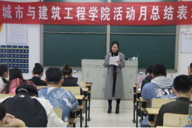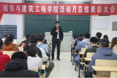 为进一步提升我院学风建设水平,表彰学风活动月中涌现的先进典型,11月27日下午,我院在理工楼2318教室召开学风活动月总结表彰大会。学院团总支书记杜珊珊,辅导员张璇出席大会。会议由辅导员张志刚主持。