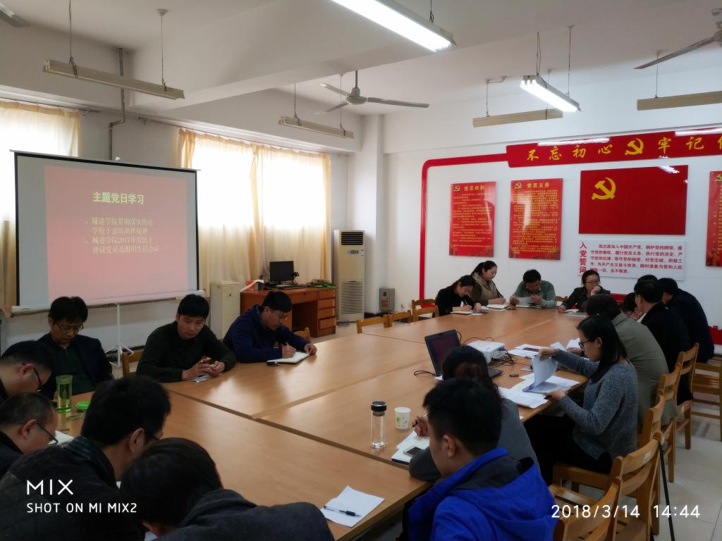 3月14日下午,城建学院开展“双周三主题党日”教育活动,全体教师和党员参加了教育活动。教育活动分两个阶段,一是传达学校春季干部培训班精神,二是各党支部召开党员组织生活会,民主评议党员活动。“双周三主题党日”教育活动由党总支书记李振清主持。