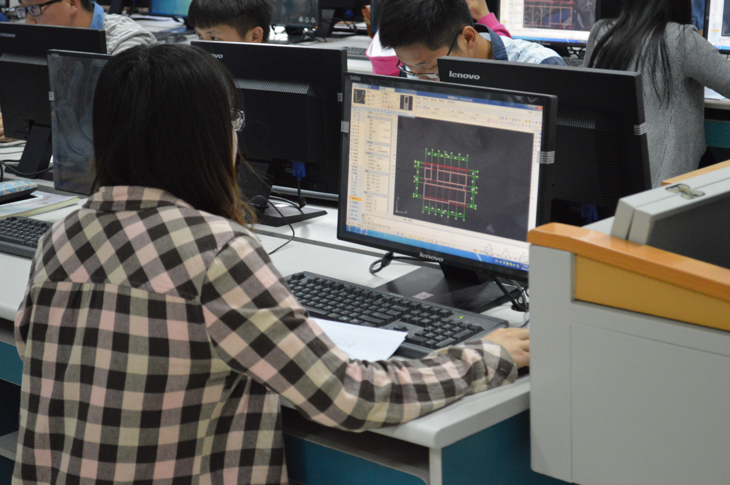 此次大赛经历了预赛和决赛两个阶段。预赛中,经过评委的认真评判,共有40名同学进入了决赛。经过一周系统的培训后,40名同学在墨子楼机房进行了决赛的角逐。决赛共120分钟,要求参赛选手在规定的时间内运用CAD软件,设计出绘图所需要的图层并且绘制完成相应的建筑平面图以及立面图,主要考察学生对CAD软件运用的熟练程度。在决赛的现场,选手们争分夺秒,认真答题。并有条不紊的绘制着自己的作品,努力做到图纸能完全表达结构,选手都高水平、高质量的完成了自己的作品!最后,经过评委评定:13级土木二班的张凤芝获得了第一名,张存波和鞠泽龙分获二、三名。