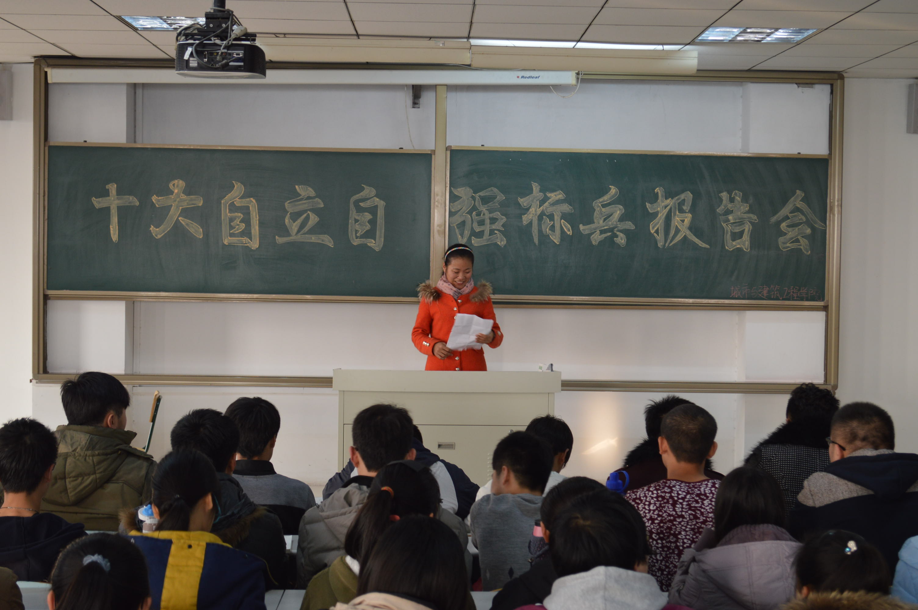 为了激励同学们自立自强,拼搏进取,12月30日下午,城建学院在理工楼2505举行了“十大自立自强标兵报告会”。报告会由王亚洁主持,全体大一新生参加了本次报告会。