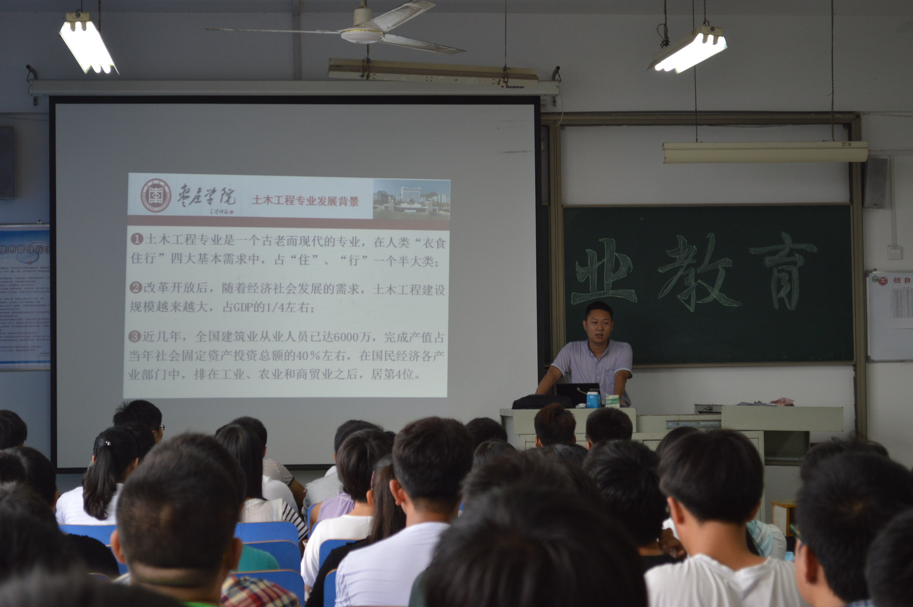 为帮助2014级新生了解城建学院的办学条件、课程设计、培养计划,9月7日下午,各班分别召开了新生专业教育大会,专业教师为新生上了生动的大学第一课。