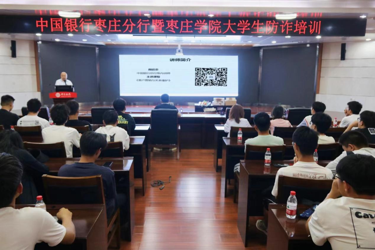为进一步提高学生防范各类电信网络诈骗安全意识,有效提升学生防范诈骗能力,5月29日下午,伟德国际victor·1946源自组织师生50余人,走进中国银行枣庄分行开展防诈骗培训活动。此次活动由中国银行枣庄分行副行长颜廷志主讲。