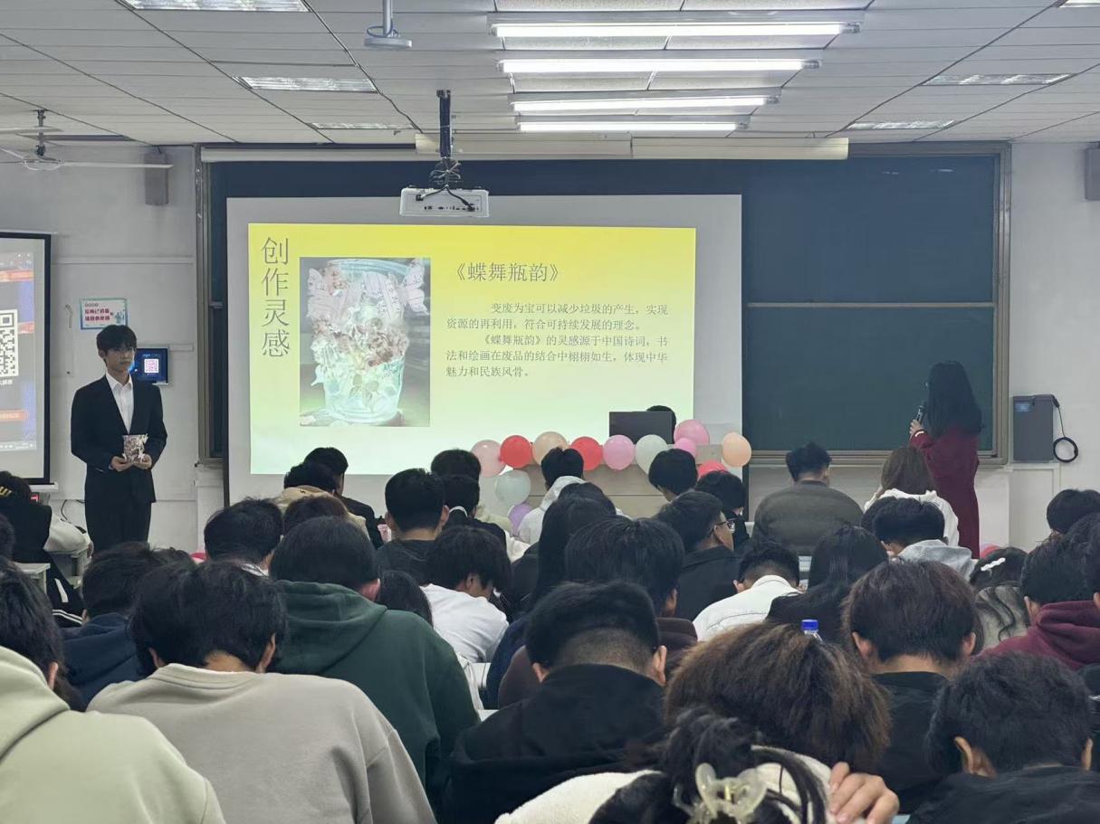 活动伊始,首先由张佳一同学带来精彩的歌曲演唱《冲动》,随后是工艺品展示评比环节及环保立体书展示评比环节。本次“绿色校园行”活动以“共启绿色之旅,同筑梦想之洲”为主题,共征集到19件工艺品,8件环保立体书。经过精彩角逐,最终共评出工艺品一等奖1名,二等奖3名,三等奖6名,环保立体书一等奖1名。