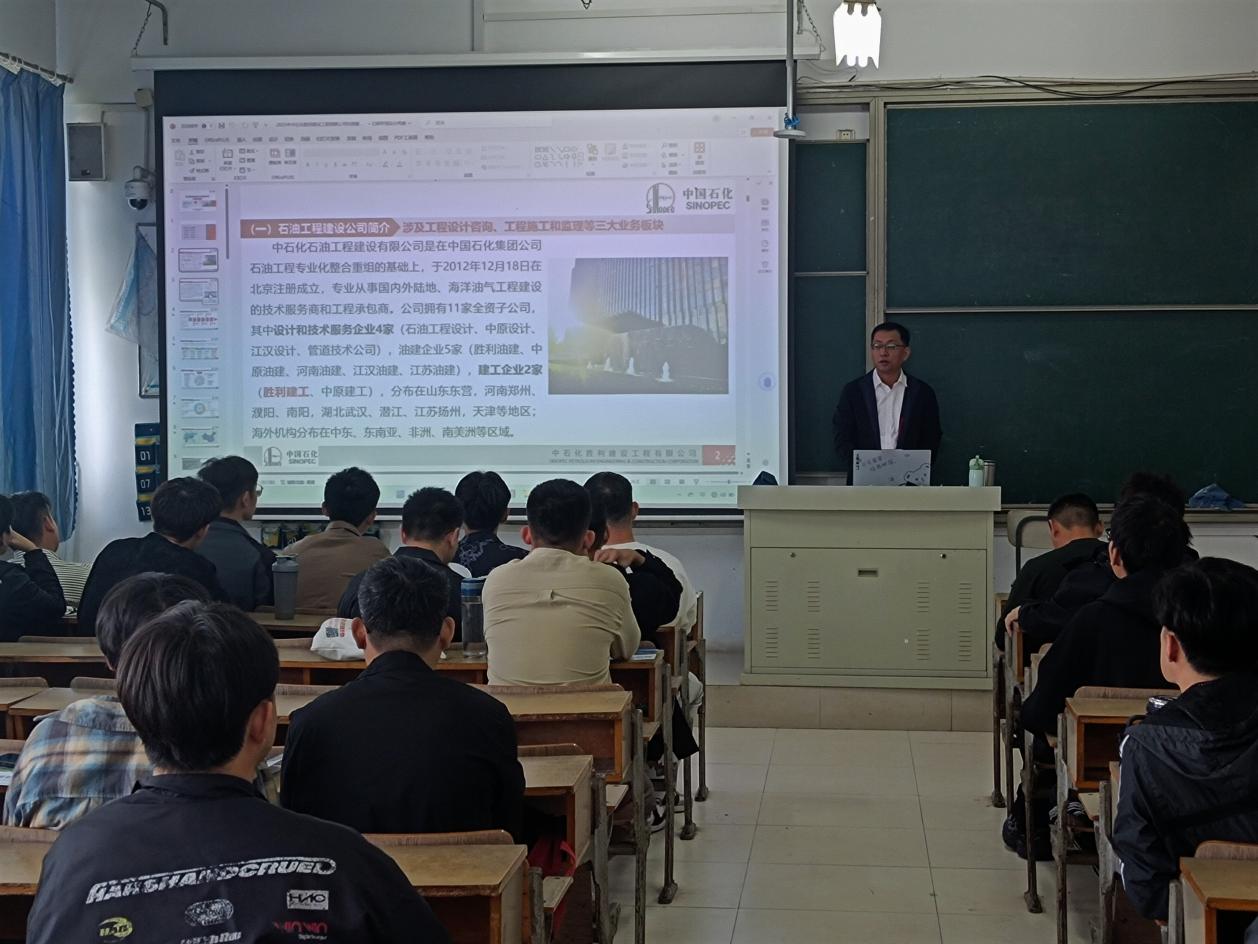 为进一步推进毕业生就业工作,拓宽毕业生就业渠道,加深学生对企业的认识和了解,10月11日上午,中石化胜利建设工程有限公司党委组织部(人力资源部)副经理张庆民来我院举办专场宣讲会。