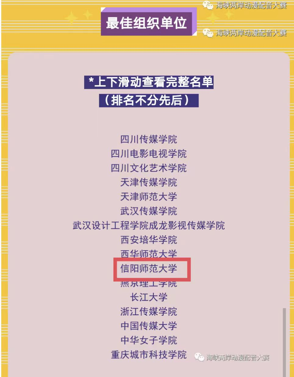 2023年10月27日,第一届海峡两岸动漫配音大赛在厦门举行。本次大赛由中国电视艺术家协会指导,国台办新闻发言人、国台办新闻局副局长、一级巡视员陈斌华,中国电视艺术家协会分党组成员、副秘书长高健等领导和嘉宾出席,并为两岸获奖选手们颁奖。河南省人文社科重点研究基地中原戏剧影视文化研究中心播音与主持艺术专业两个代表团,九名优秀学子刘玮驿、詹雅婷、秦子玉、李逸、周宸杰、李洪沛、李海睿、王怡迪、曹静怡荣获入围优秀奖;河南省人文社科重点研究基地中原戏剧影视文化研究中心江远方老师荣获“优秀指导老师”称号;betway唯一官网荣获“优秀指导单位”称号。