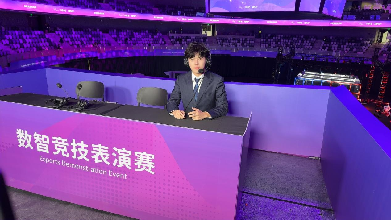 2023年11月11—12日,杭州第19届亚运会表演赛项目—亚洲数智竞技表演赛在中国杭州电竞中心举办。河南省人文社科重点研究基地中原戏剧影视文化研究中心2021级播音与主持艺术专业学生刘玮驿同学参与数智竞技表演赛解说。